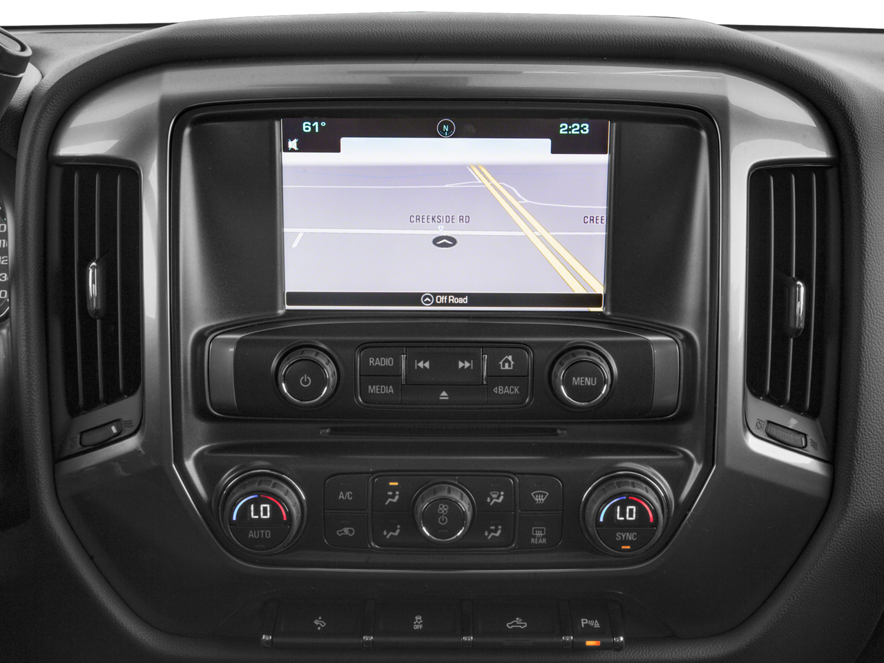 This vehicle keeps you comfortable with Auto Climate. The state of the art park assist system will guide you easily into any spot. The installed navigation system will keep you on the right path. See what's behind you with the back up camera on this vehicle. Bluetooth® technology is built into this 2017 Chevrolet Silverado 1500, keeping your hands on the steering wheel and your focus on the road. An off-road package is equipped on it. The Chevrolet Silverado features steering wheel audio controls. Never get into a cold vehicle again with the remote start feature on this 1/2 ton pickup. This vehicle is a certified CARFAX 1-owner. Quickly unlock it with keyless entry. Set the temperature exactly where you are most comfortable in this 2017 Chevrolet Silverado 1500. The fan speed and temperature will automatically adjust to maintain your preferred zone climate. When you encounter slick or muddy roads, you can engage the four wheel drive on the vehicle and drive with confidence.