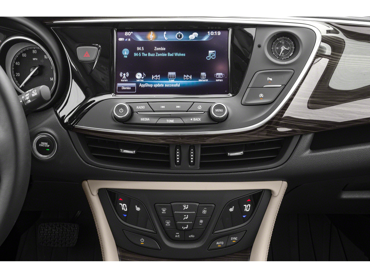 The leather seats in this 1/2 ton suv are a must for buyers looking for comfort, durability, and style. Protect this 1/2 ton suv from unwanted accidents with a cutting edge backup camera system. This model keeps you comfortable with Auto Climate. It offers Android Auto for seamless smartphone integration. The Buick Envision offers Apple CarPlay for seamless connectivity. Start this 2020 Buick Envision from inside with remote start. It features a hands-free Bluetooth® phone system. Keep your hands warm all winter with a heated steering wheel in the vehicle . The state of the art park assist system will guide you easily into any spot. Enjoy the convenience of the power liftgate on this Buick Envision. Conquer any rainy, snowy, or icy road conditions this winter with the all wheel drive system on this Buick Envision. This unit has a 4 Cyl, 2.5L high output engine. The Buick Envision is painted with a sleek and sophisticated black color.